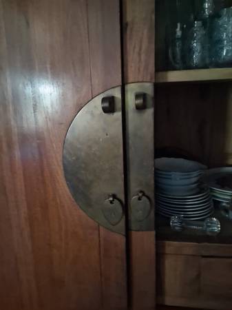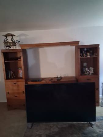 Two China cabinets loaded with dishes...... So much stuff.. tv cabinet huge. Can hold a 66" tv. Solid wood.